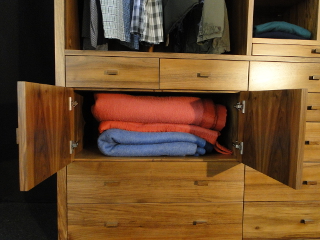nombreux tiroirs d'un meuble dressing en bois de noyer