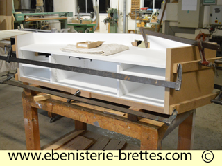 Retour dans notre atelier pour la fabrication du meuble de télévision en angle.