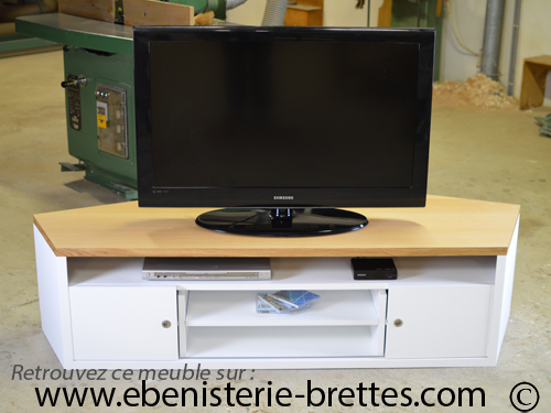 Sous le dessus se trouve une niche sur toute la longueur du meuble de télévision d'angle. Sa hauteur est de 9 cm. Tous les éléments de nos meubles sont sur mesures.