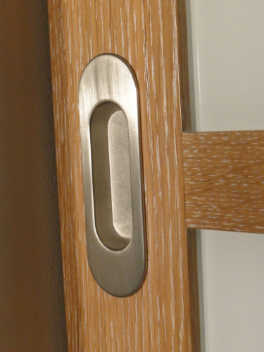Façade de placard aux verres laqués blancs et encadrement chêne cérusé
